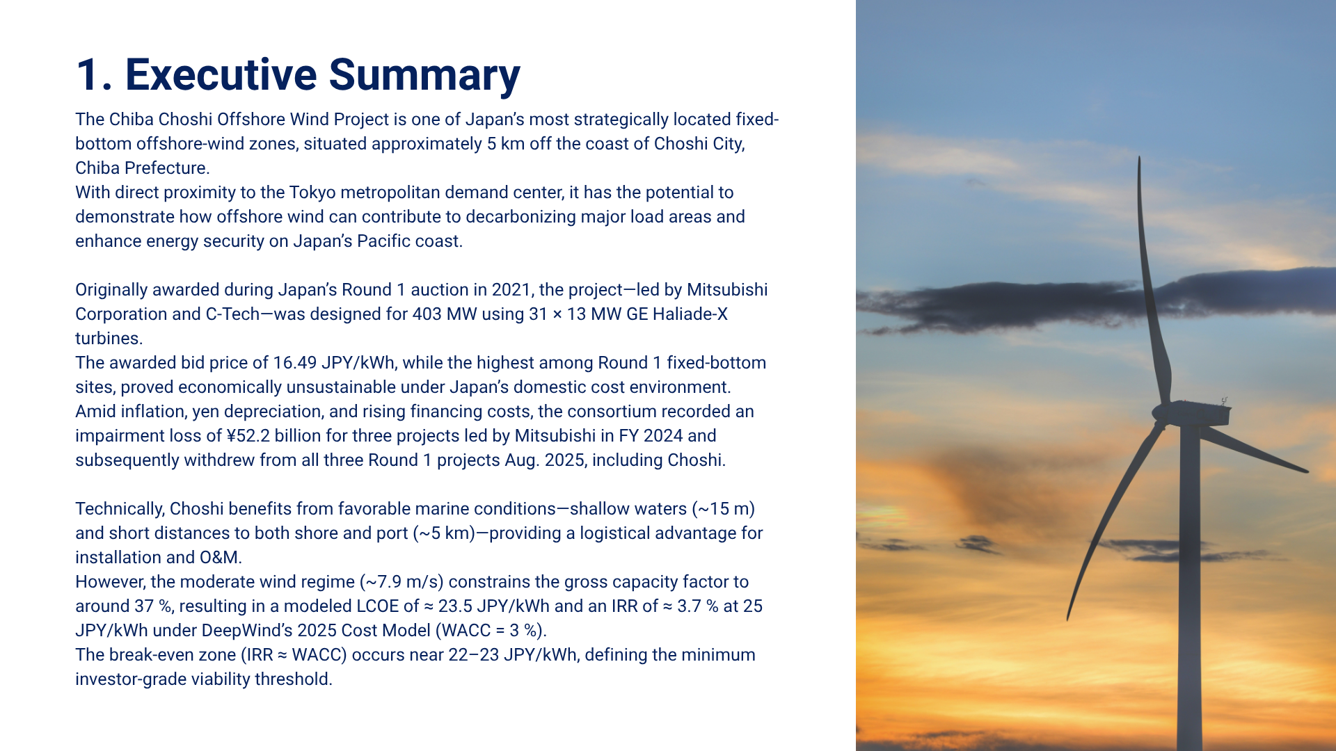 📈 DeepWind Premium #1 — 24-page analytical report on Japan’s 2026 Choshi Offshore Wind rebid. Includes full cost breakdown, IRR sensitivity, and benchmark analysis.